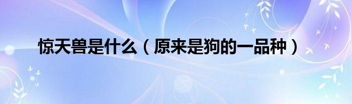 大家好,惊天兽是什么,原来是狗的一品种很多人还不知道,现在让我们一起来看看吧!