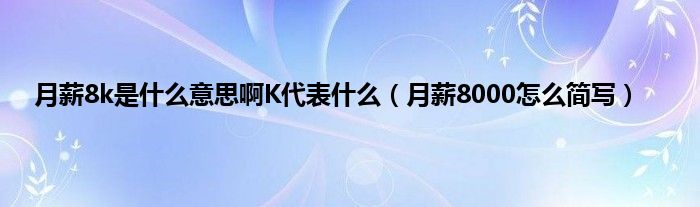 本文,月薪8k是什么意思啊K代表什么,月薪8000怎么简写到此就分享完毕,希望对大家有所帮助。