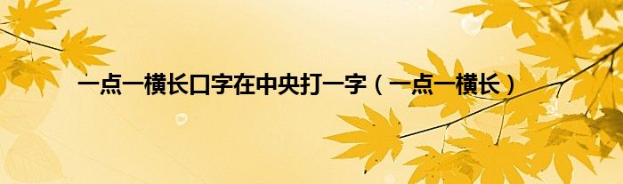 大家好,小问来为大家解答以上问题。一点一横长口字在中央打一字,一点一横长这个很多人还不知道,现在让我们一起来看看吧!