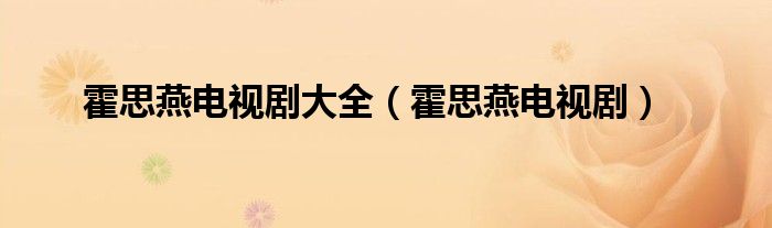以上就是【霍思燕电视剧大全,霍思燕电视剧】相关内容。