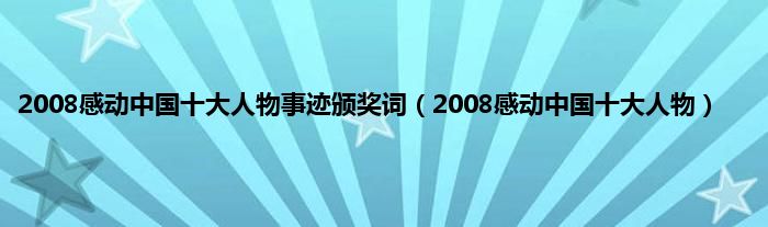 以上就是【2008感动中国十大人物事迹颁奖词,2008感动中国十大人物】相关内容。