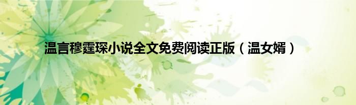 以上就是【温言穆霆琛小说全文免费阅读正版,温女婿】相关内容。