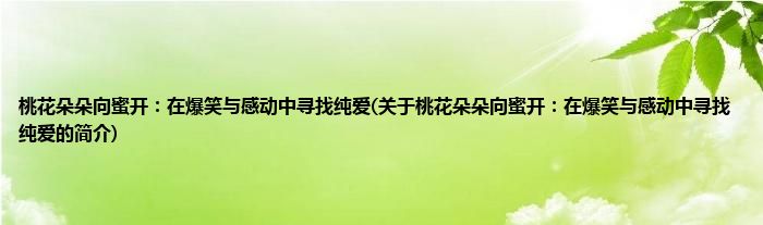 大家好,桃花朵朵向蜜开:在爆笑与感动中寻找纯爱,关于桃花朵朵向蜜开:在爆笑与感动中寻找纯爱的简介很多人还不知道,现在让我们一起来看看吧!
