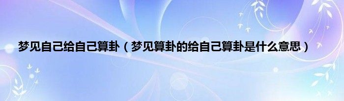 大家好,综合小编来为大家讲解下。梦见自己给自己算卦,梦见算卦的给自己算卦是什么意思这个很多人还不知道,现在让我们一起来看看吧!