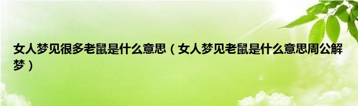 大家好,综合小编来为大家讲解下。女人梦见很多老鼠是什么意思,女人梦见老鼠是什么意思周公解梦这个很多人还不知道,现在让我们一起来看看吧!