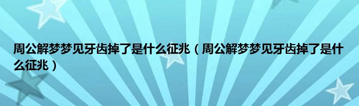大家好,综合小编来为大家讲解下。周公解梦梦见牙齿掉了是什么征兆,周公解梦梦见牙齿掉了是什么征兆这个很多人还不知道,现在让我们一起来看看吧!