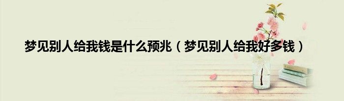 大家好,综合小编来为大家讲解下。梦见别人给我钱是什么预兆,梦见别人给我好多钱这个很多人还不知道,现在让我们一起来看看吧!