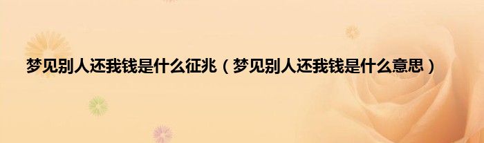 大家好,综合小编来为大家讲解下。梦见别人还我钱是什么征兆,梦见别人还我钱是什么意思这个很多人还不知道,现在让我们一起来看看吧!
