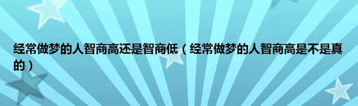 大家好,综合小编来为大家讲解下。经常做梦的人智商高还是智商低,经常做梦的人智商高是不是真的这个很多人还不知道,现在让我们一起来看看吧!