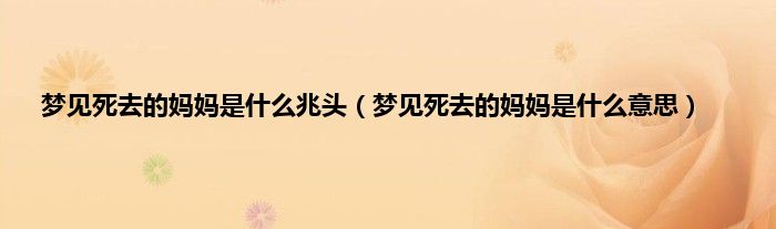 本文梦见死去的妈妈是什么兆头,梦见死去的妈妈是什么意思到此分享完毕,希望对大家有所帮助。