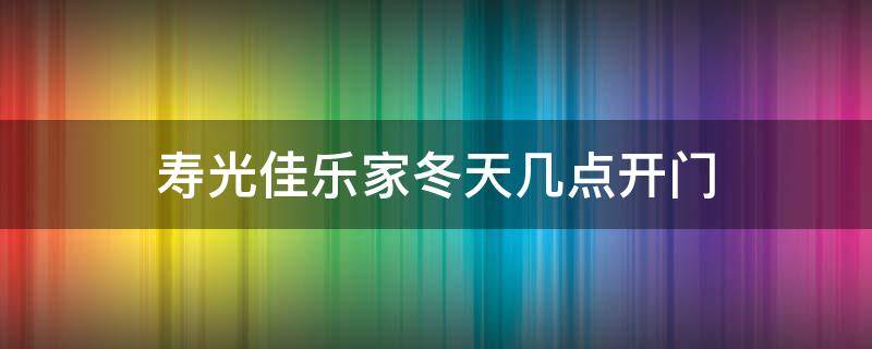 寿光佳乐家冬天8点30开门。佳乐家,成立于1999年12月5日,隶属山东潍坊百货集团股份有限公司,是以经营食品、日用品为主,集购物、休闲、餐饮、娱乐于一体的大卖场连锁机构。佳乐家采用规范的国际化管理模式,贯彻全新的经营理念和运营思路。以全面提升家庭生活品质为经营宗旨;以一站购物、一次购足、实惠便利、品质保证为经营特色;以顾客满意为经营理念;以居民日常生活用品和食品为经营重点。不断完善理念、行为、视听、服务、商品五大顾客满意系统,是潍坊市首屈一指、最受潍坊市民信赖的大卖场之一。