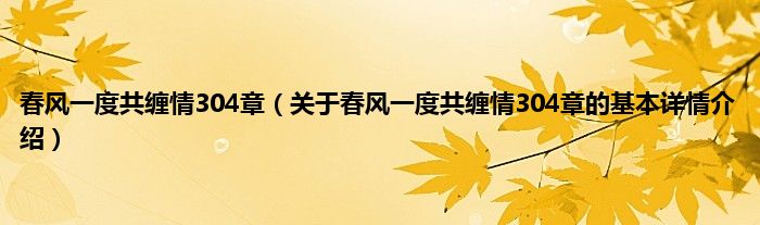 本文关于春风一度共缠情304章的基本详情介绍就讲解完毕,希望对大家有所帮助。