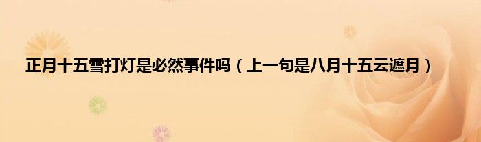 本文正月十五雪打灯是必然事件吗,上一句是八月十五云遮月到此分享完毕,希望对大家有所帮助。