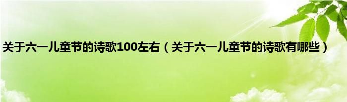 大家好,综合小编来为大家讲解下。关于六一儿童节的诗歌100左右,关于六一儿童节的诗歌有哪些这个很多人还不知道,现在让我们一起来看看吧!