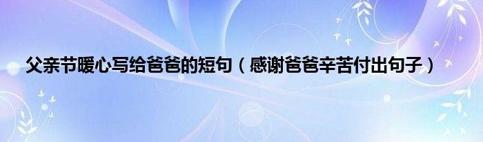 大家好,综合小编来为大家讲解下。父亲节暖心写给爸爸的短句,感谢爸爸辛苦付出句子这个很多人还不知道,现在让我们一起来看看吧!