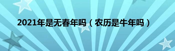 大家好,综合小编来为大家讲解下。2021年是无春年吗,农历是牛年吗这个很多人还不知道,现在让我们一起来看看吧!
