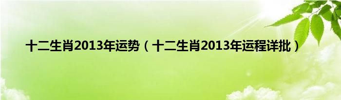 本文十二生肖2013年运势,十二生肖2013年运程详批到此分享完毕,希望对大家有所帮助。