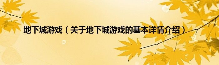本文关于地下城游戏的基本详情介绍就讲解完毕,希望对大家有所帮助。