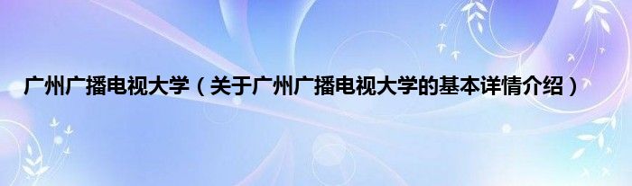 本文关于广州广播电视大学的基本详情介绍就讲解完毕,希望对大家有所帮助。