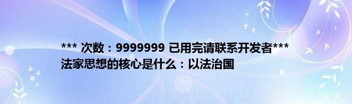 大家好,综合小编来为大家讲解下。*** 次数:9999999 已用完请联系开发者*** 法家思想的核心是什么:以法治国这个很多人还不知道,现在让我们一起来看看吧!