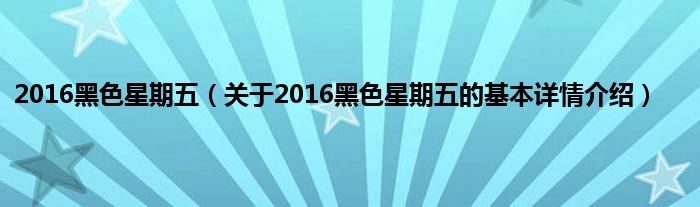 2016黑色星期五(关于2016黑色星期五的基本详情介绍)