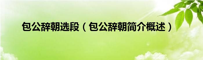本文包公辞朝选段,包公辞朝简介概述到此分享完毕,希望对大家有所帮助。