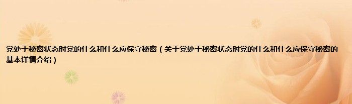 党处于秘密状态时党的什么和什么应保守秘密(关于党处于秘密状态时党的什么和什么应保守秘密的基本详情介绍)