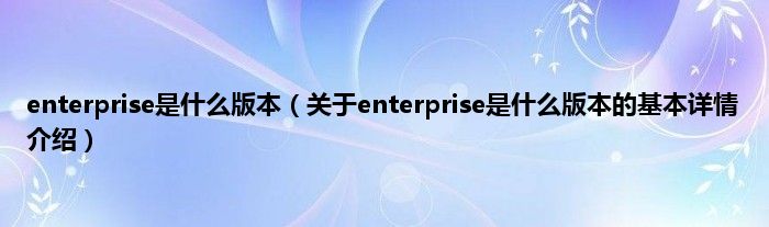 本文关于enterprise是什么版本的基本详情介绍就讲解完毕,希望对大家有所帮助。