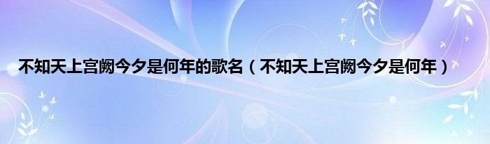 大家好,小问来为大家解答以上问题。不知天上宫阙今夕是何年的歌名,不知天上宫阙今夕是何年这个很多人还不知道,现在让我们一起来看看吧!