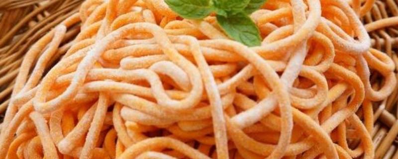 胡萝卜面条不耐放,放冰箱冷藏可以一般可以保存2~3天,放冰箱冷冻一般可以保存5~7天。面条是一种常见的食物。起源于中国,已有四千多年的制作食用历史。面条是一种制作简单,食用方便,营养丰富,即可作为主食又可作为快餐的健康保健食品,早已为世界人民所接受与喜爱。制作时用谷物或豆类的面粉加水磨成面团,之后压或擀制或抻成片再切或压,再或者使用搓、拉、捏等手段,制成条状(或窄或宽,或扁或圆)或小片状,最后经煮、炒、烩、炸而成。