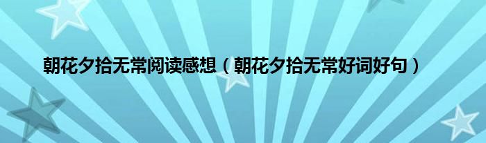 以上就是【朝花夕拾无常阅读感想,朝花夕拾无常好词好句】相关内容。