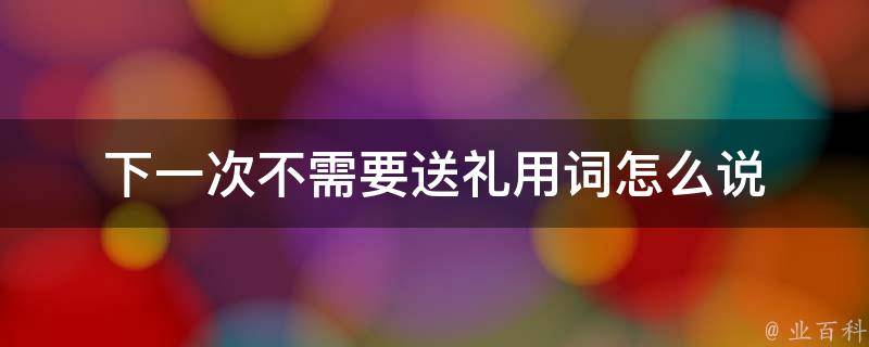 1、只此一次,下不为例。2、谢谢你的心意,不过下次这些礼物就不用了,我不需要,抱歉。3、非常感谢,承蒙厚爱,礼物就不收下了。4、谢谢你的好意,但我不需要礼物,以后不用了。