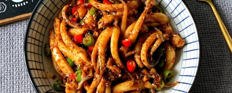 1、将鱿鱼须洗净后切成小段,用料酒、姜丝腌制10分钟左右。