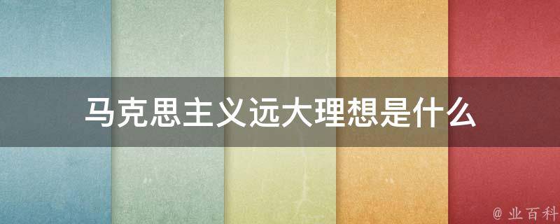 马克思主义远大理想是实现共产主义。共产主义概念包括共产主义思想、共产主义运动和共产主义制度三个层面。共产主义思想是无产阶级的思想体系,共产主义运动是无产阶级的革命实践活动,共产主义制度是人类最理想的社会制度,也是人类社会发展的最高形态。