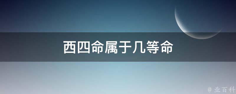西四命属于中等命。西四命就是命理学,依三元九运把人的命卦分为坎、离、震、巽、乾、坤、艮、兑等八,其中坎、离、震、巽等命卦在阳宅学上称为东四命,乾、坤、艮、兑则称之为西四命。西四命是风水学概念,是中国古代对命相的一种划分。