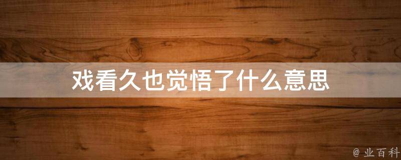 戏看久也觉悟了意思是醒悟明白,由迷惑而明白、由模糊而认清,也指对道理的认识,进入到一种清醒的或有知觉的新的状态。觉悟出自《荀子成相》:不觉悟,不知苦,迷惑失指易上下。唐刘知几《史通杂说上》:向若二书不出,学者为古所惑,则代成聋瞽,无由觉悟也。