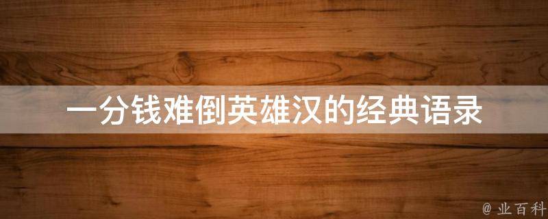 最佳答案1、人穷气短,一文钱难倒英雄汉,没有钱在任何时候都是寸步难行。2、有钱英雄汉,没钱汉子难。3、钱不是万能的,没有钱却是万万不能的。4、金钱这东西,只要能够一人的生活就行了。5、有爱未必就有钱,有钱未必就有爱。6、人不能低下高贵的头,但捡钱的时候例外。7、生活中最没有用的东西是财产,最...
