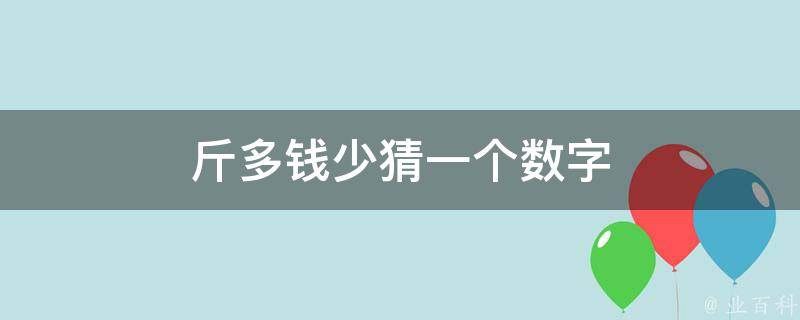 最佳答案斤多钱少猜一个数字是24,可以从斤多钱少的笔画入手去猜数字。斤字4笔画、多字6笔画、钱字10笔画、少字4笔画,4个字一共是4+6+10+4=24笔。因此斤多钱少猜一个数字是24。猜字谜主要是根据方块汉字笔画繁复、偏旁相对独立、结构组合多变的特点,运用离合、增损、象形、会意等多种方式来进行。