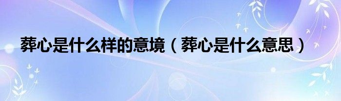 大家好,小夏来为大家讲解下。葬心是什么样的意境,葬心是什么意思很多人还不知道,现在让我们一起来看看吧!