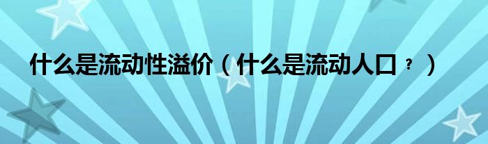 大家好,小夏来为大家讲解下。什么是流动性溢价,什么是流动人口﹖很多人还不知道,现在让我们一起来看看吧!