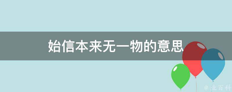 最佳答案始信本来无一物的意思是:方才相信本来什么都没有,也可以理解为一无所有。古诗有云:本来无一物,何处惹尘埃。由此可见人生终究能从一而终的只有自己。比如刚出生的婴幼儿,他们都是赤身裸体的来到这个繁华大千世界,他们是最干净、最纯粹的存在。