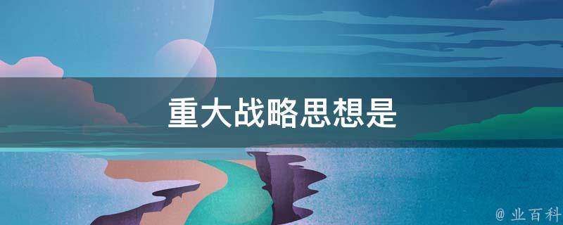 最佳答案重大战略思想是科学发展观。科学发展观是中国特色社会主义理论体系最新成果,是中国共产党集体智慧的结晶,是指导党和国家全部工作的强大思想武器。科学发展观同马克思列宁主义、毛泽东思想、邓小平理论、三个代表重要思想一道,是党必须长期坚持的指导思想。