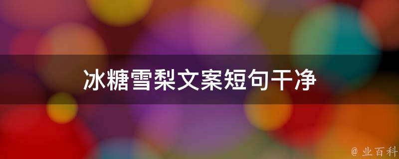 3、在这冰糖雪梨的世界里,找到那份纯净、天然的美好,感受秋天的养生之道,让健康与美丽兼备。