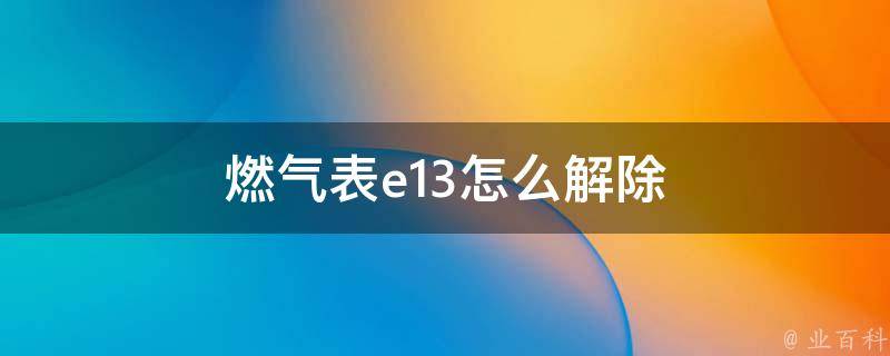 燃气表e13怎么解除