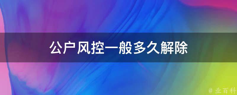 公户风控一般24小时内解除。公户银行卡因为频繁存取钱、输错密码导致状态异常,会被银行方风控审查,24小时内会自动解除。银行风控是指银行对客户账户进行的风险控制,是银行在监测到客户账户存在交易风险或存在安全问题的情况下,为保证账户安全,对账户进行风险控制的行为。