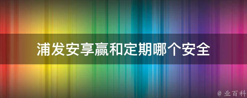 最佳答案定期安全。浦发安享赢是一款非保本浮动收益型理财产品,其本金不保证,但具有较高的收益潜力和较低的流动性,适合追求较高收益的投资者。定期是一种较为保守的理财产品,其本金是保证的,具有较高的保本性和较高的流动性,适合风险偏好较低、稳定收益的投资者。