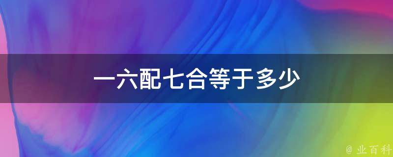 最佳答案一六配七合等于13。这句话的意思是一个六与七的和,因此数字就是6+7=13。3是12和14之间的自然数,13还是奇数、质数、两位数。在数学中和之前的素数11组成孪生素数。佛教里的13是大吉数,佛教传入中国宗派为十三宗,代表功德圆满。