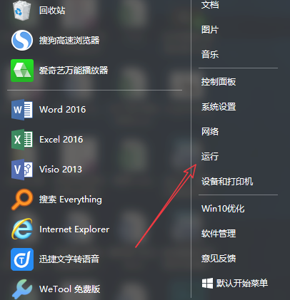3、鼠标左键点击windows图标,在如图所示位置也有运行,点击它即可调出运行命令。