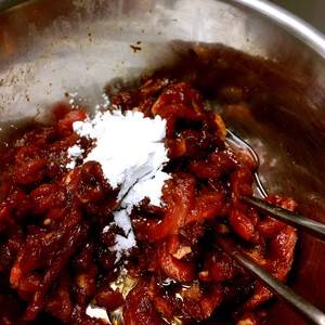 5、静置20分钟,加入土豆淀粉和植物油搅拌均匀。