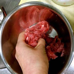 8、把肉铲开,开小火,约半分钟后,改中大火,开始翻炒。